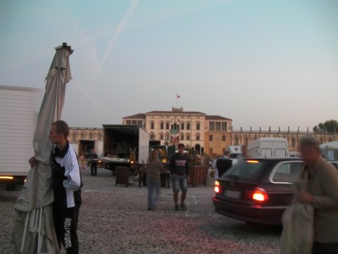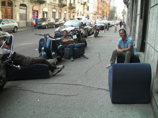Roberto Mattaを無造作に道端に座っている友人。昼間からgrappaを飲んでいます。かなりスローです。