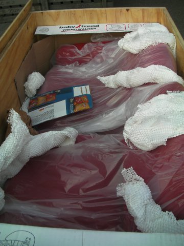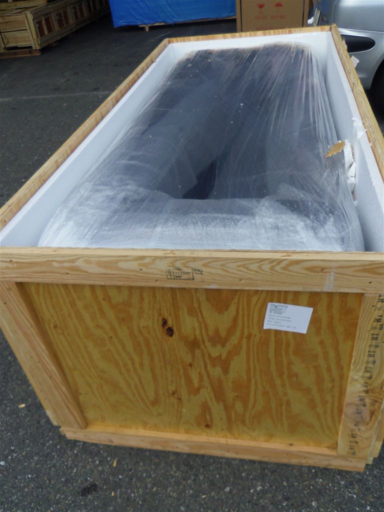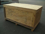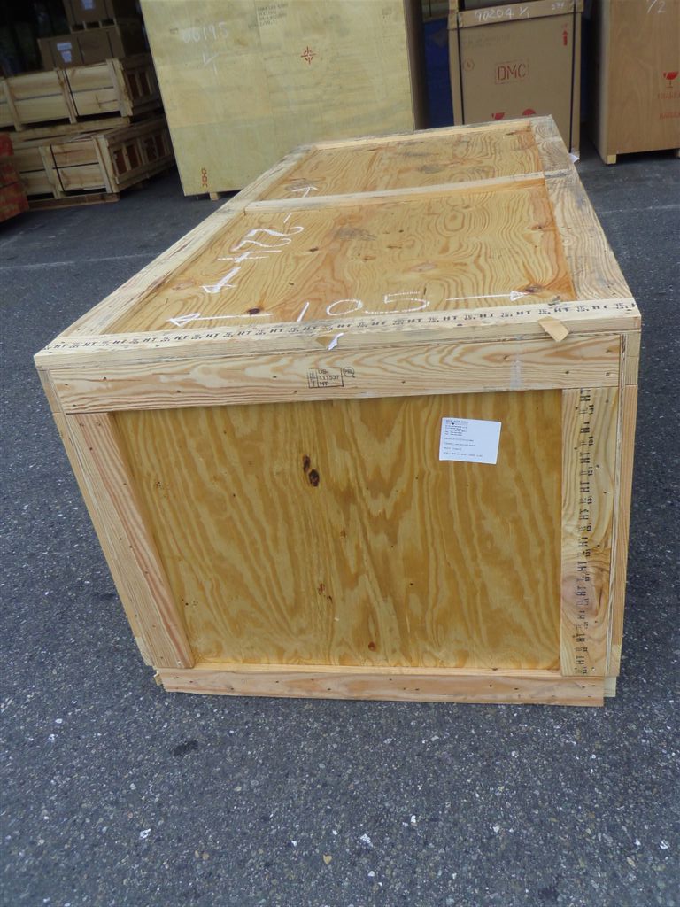 単発の輸入の場合は物にもよりますが、大型のアイテムや壊れ物は倉庫に到着した時点ではこのようにウッド・BOXに入れて輸入します。